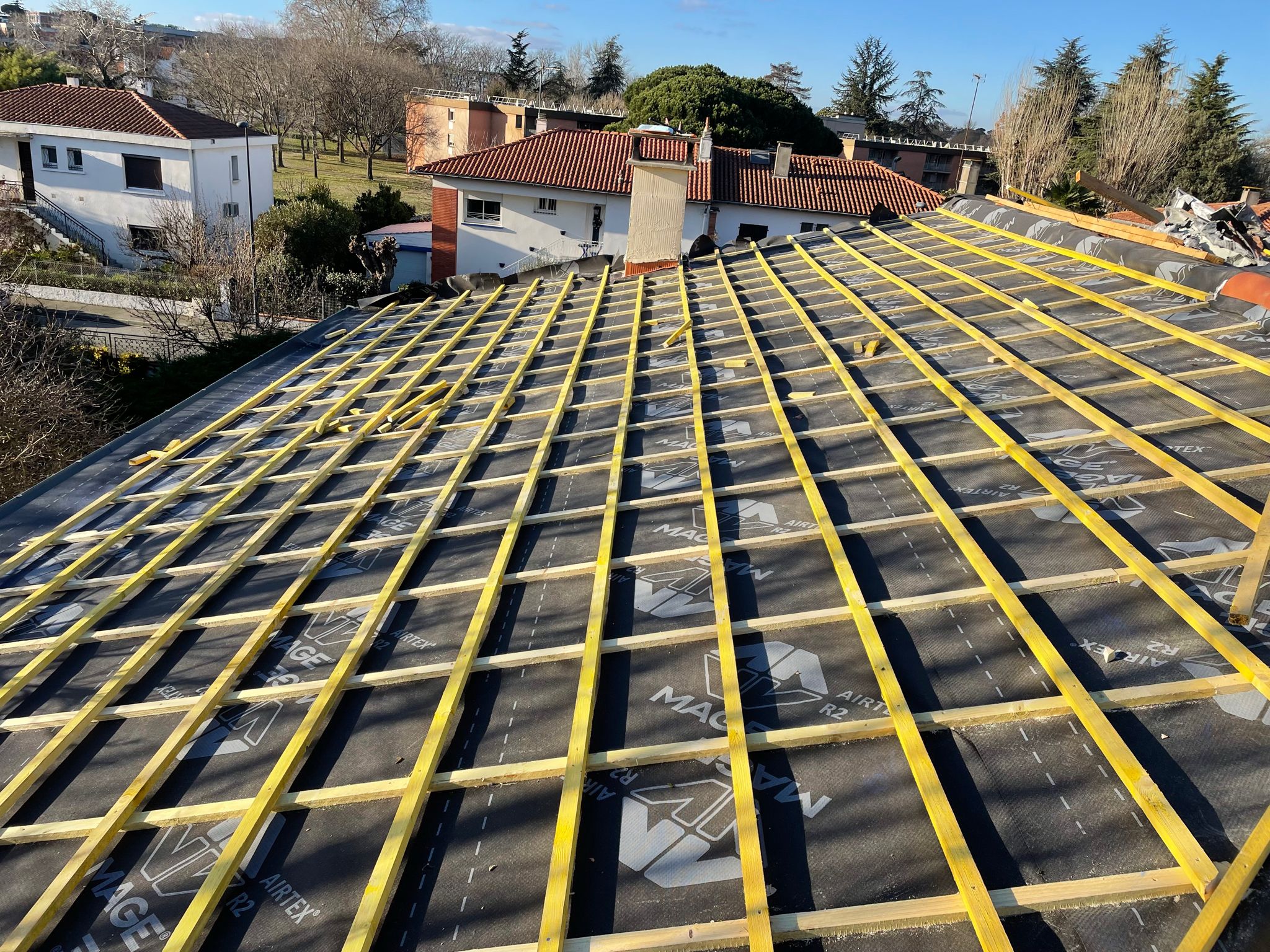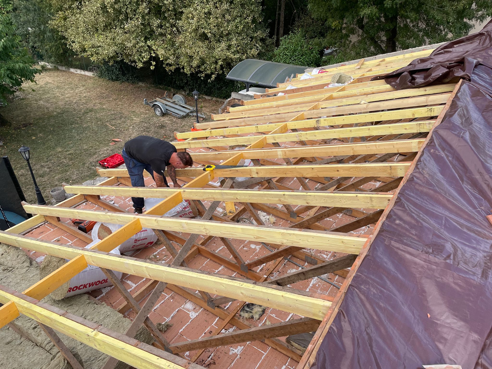 Nous réalisons la charpente pour tous types de toitures, qu’il s’agisse d’un toit plat, d’un toit à deux pans ou de formes plus complexes. Chaque structure est conçue sur mesure en fonction de la configuration du bâtiment, des contraintes techniques et du type de couverture choisi. Nous assurons la fabrication, la pose et le renforcement de charpentes traditionnelles ou industrielles, en veillant à garantir solidité, durabilité et parfaite étanchéité de l’ensemble de la toiture.